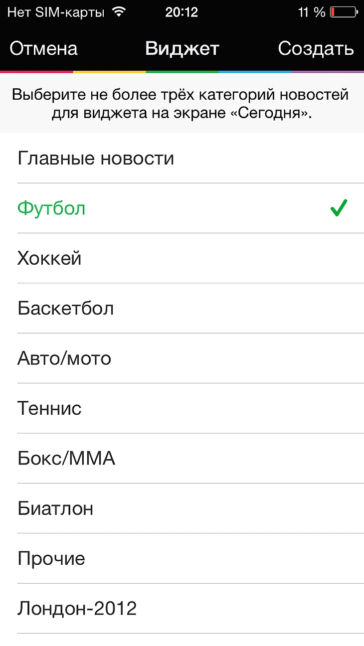 Чтобы создать виджет с новостями в основном приложении, нажмите на кнопку в правом верхнем углу в списке новостей и выберите до трех разделов. Затем на экране «Сегодня» нажмите «Изменить» и добавьте приложение Sports.ru в список. Теперь вы точно будете в курсе последних новостей.