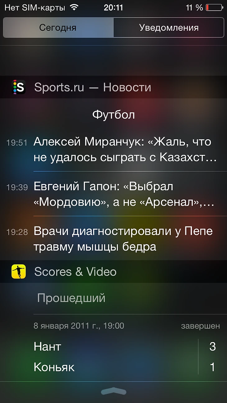 Если ваше устройство работает на iOS 8 и выше, вы можете создавать виджеты в основном приложении Sports.ru и в Scores & Video.