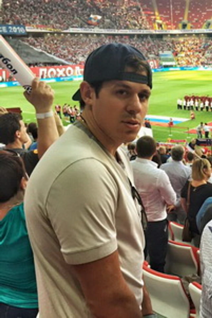 Хоккеист сборной России Евгений Малкин посетил футбольный матч квалификации Евро-2016 Россия — Австрия (0:1).
