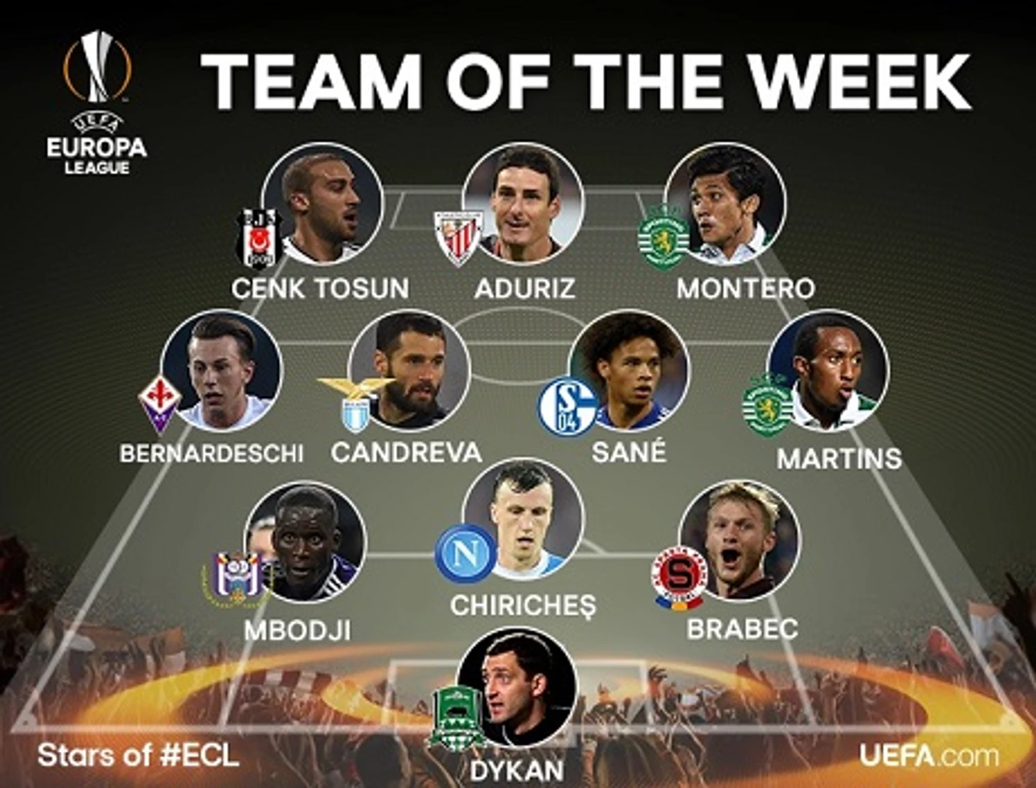 УЕФА представил символическую сборную 5-го тура группового этапа Лиги Европы.