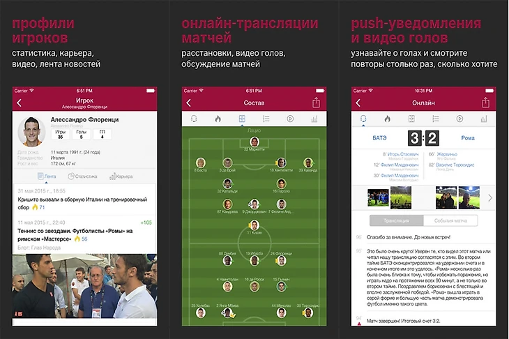 – Push-уведомления о голах и результатах команд, а также видео самих голов и опасных моментов в каждом матче;
