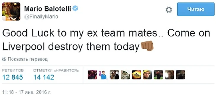 Источник: твиттер Марио Балотелли