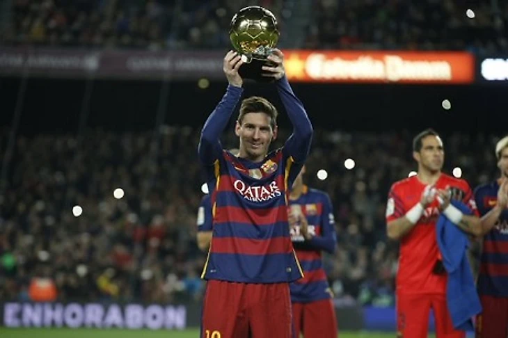 Нападающий «Барселоны» Лионель Месси перед матчем 20-го тура примеры против «Атлетика» (6:0) вышел на поле с «Золотым мячом» и показал его 68019 болельщикам, пришедшим на «Камп Ноу».