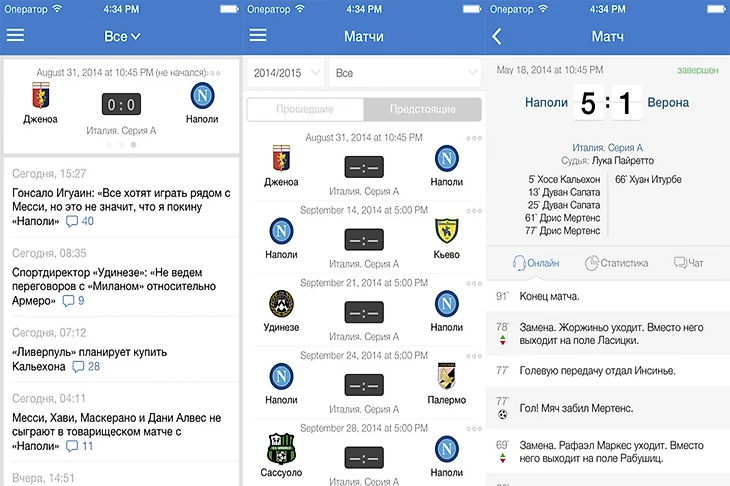 Матч «Наполи» – «Интер» в клубных приложениях от Sports.ru