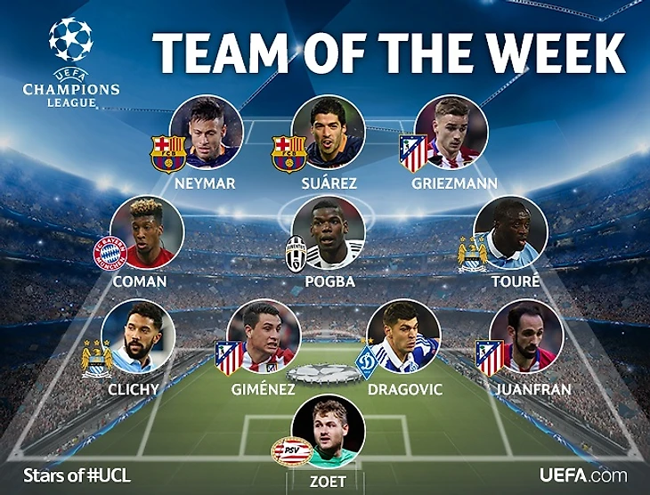 В состав попали: Зут (ПСВ), Клиши («Манчестер Сити»), Хименес («Атлетико»), Драгович («Динамо» Киев), Хуанфран («Атлетико»), Коман («Бавария»), Погба («Ювентус»), Яя Туре («Манчестер Сити»), Неймар («Барселона»), Луис Суарес («Барселона»), Гризманн («Атлетико»).