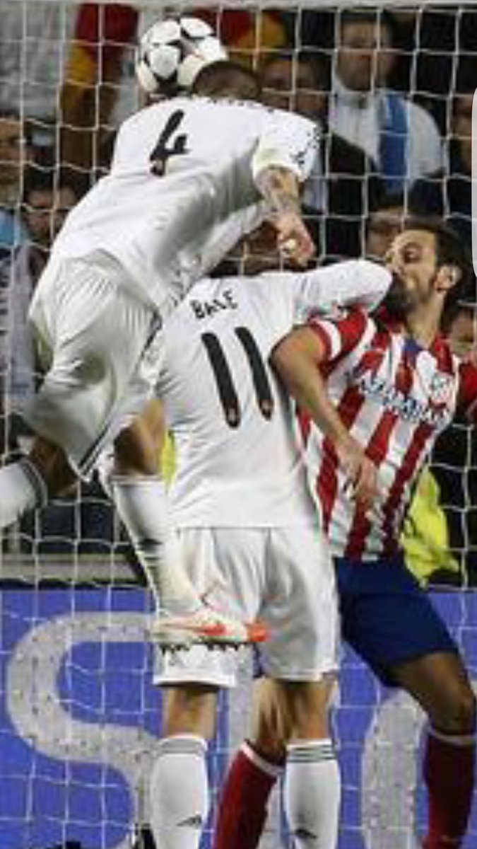 во время удара Рамоса перед голом, Бэйл бьет локтем в лицо Хуанфрана, чистое нарушение правил в атаке - и победа 1-0 АтМд