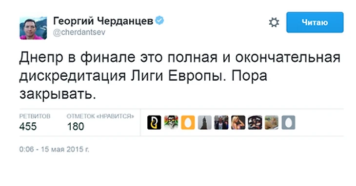 Бывший форвард «Днепра», а ныне игрок «Кубани» Евгений Селезнев отреагировал на высказывание комментатора Георгия Черданцева, который после выхода днепропетровского клуба в финал Лиги Европы-2015 призвал закрыть турнир.