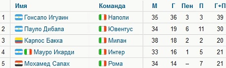 Таким образом, форвард сборной Аргентины забил 36 голов в 35 матчах и стал лучшим бомбардиром серии А.