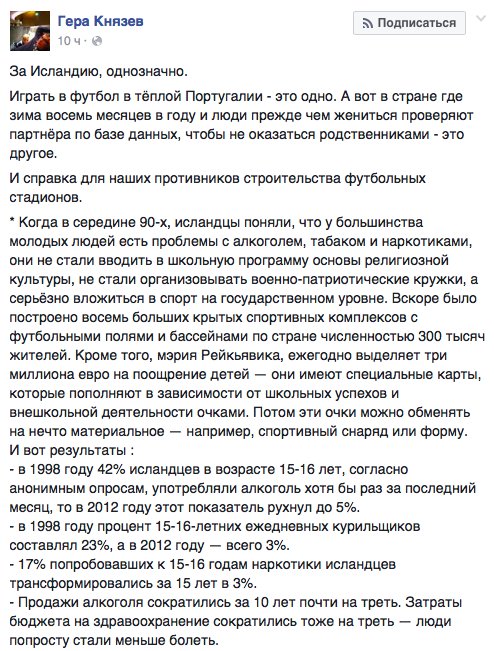 А исландцы - это полупрофи, у большинства есть работа и помимо футбола. У многих неплохое образование. Для них Роналду - сильный, но глупый зверь. А они - охотники. Они не могут состязаться со зверем в скорости и силе, но могут перехитрить его. Что они вчера и сделали на поле.