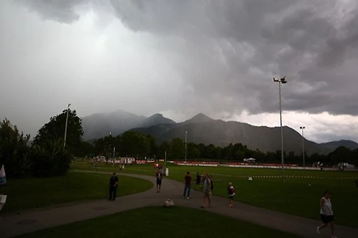 «В конце первого тайма небо в Грассау резко потемнело (из-за плотности туч пропал сигнал спутника и прекратилась видеотрансляция), а вместе со свистком судьи на перерыв начался сильнейший штормовой ветер с грозой и ливнем, вследствие чего заключительный контрольный матч спартаковцев в нынешнее межсезонье был прерван...