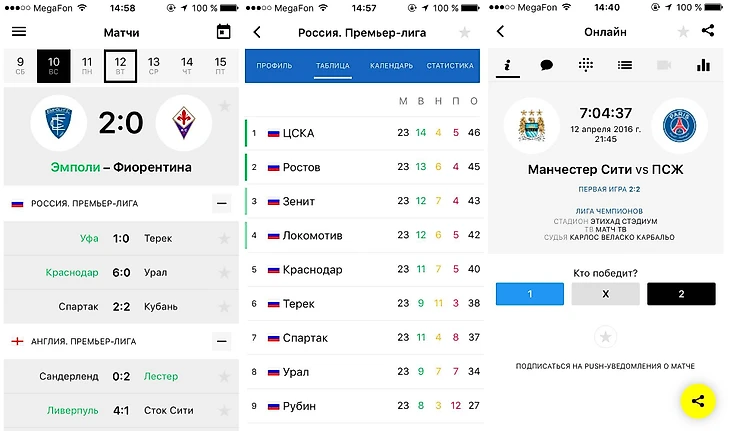 Предматчевые и послематчевые расклады, голосование за исход матча, выбор лучшего и худшего игроков матча и возможность рассказывать о своем выборе в соцсетях.
