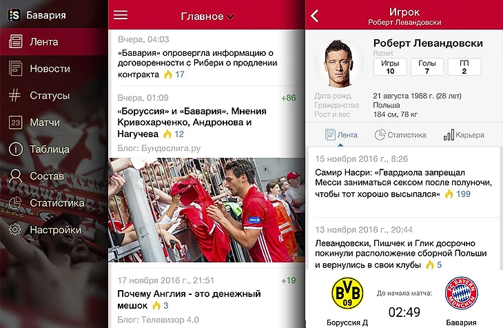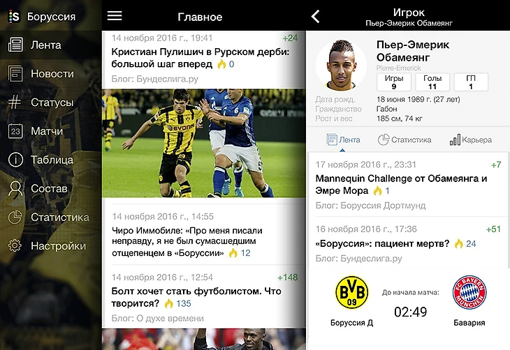 Матч «Боруссия» Д – «Бавария» в обновленных клубных приложениях на русском языке