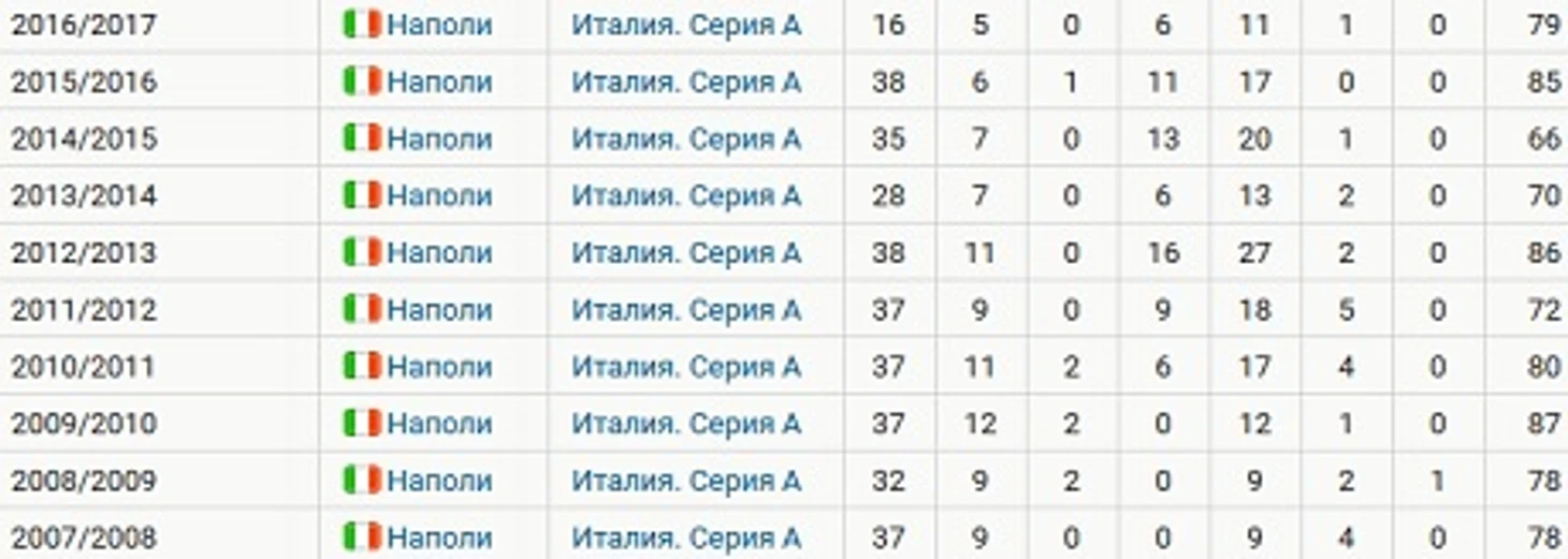 • Гамшик – единственный игрок, забивший минимум 5 голов в 10 последних сезонах серии А