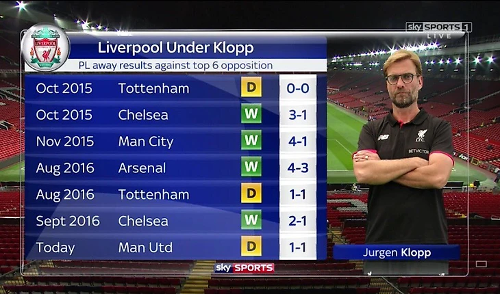 С октября 2015 года «Ливерпуль» провел с «Тоттенхэмом» (дважды), «Челси» (дважды), «Манчестер Сити», «Арсеналом» и «МЮ» 7 матчей в гостях, одержал 4 победы и еще 3 игры завершил вничью.