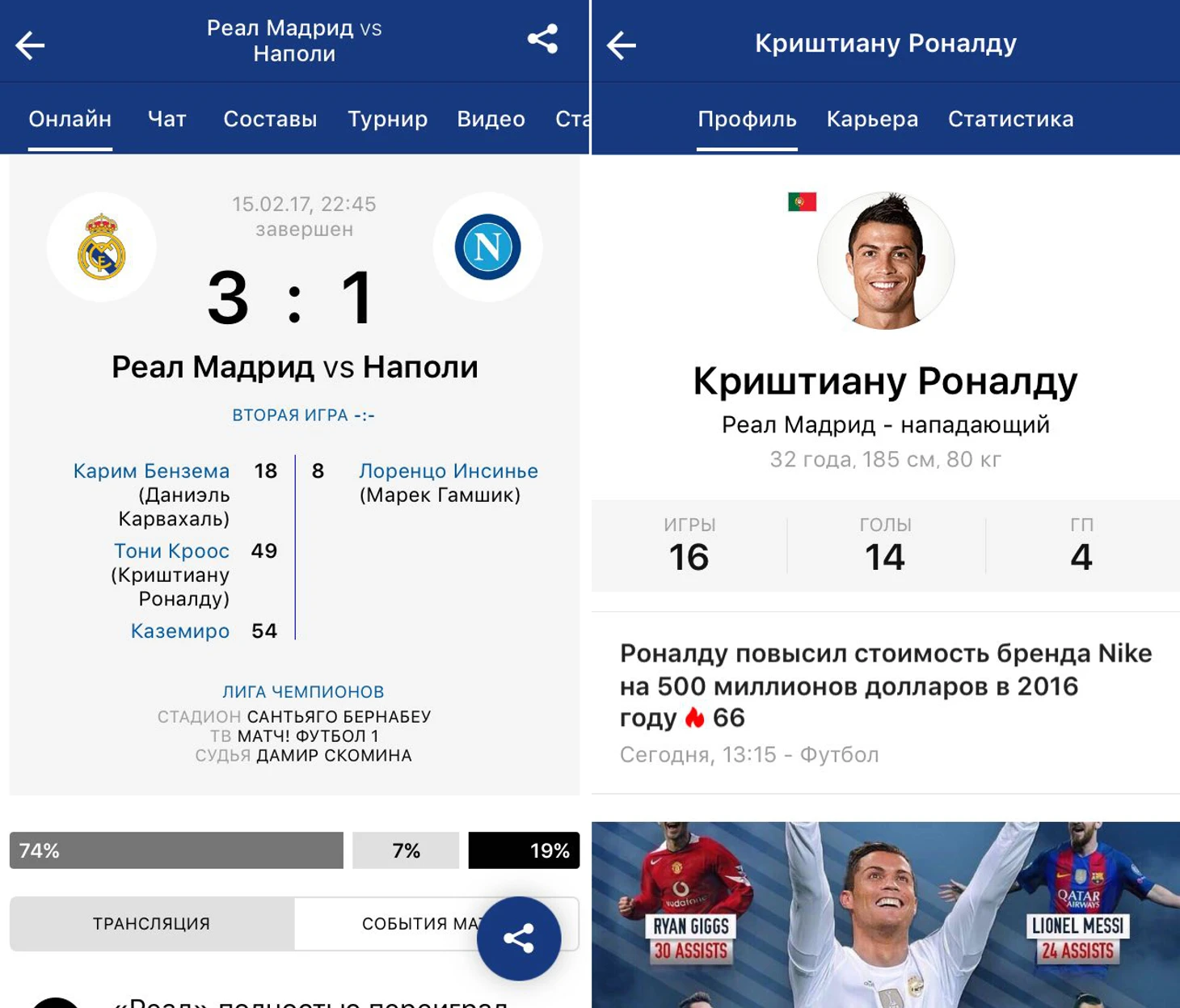 – Широкие возможности для общения с другими болельщиками в комментариях и статусах.