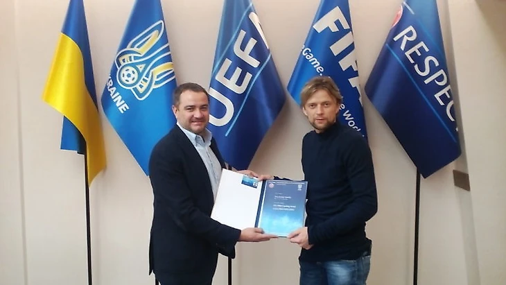 Диплом 37-летнему украинцу вручил глава Федерации футбола Украины Андрей Павелко.