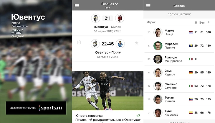 С приложением «Ювентуc» вы получаете:
