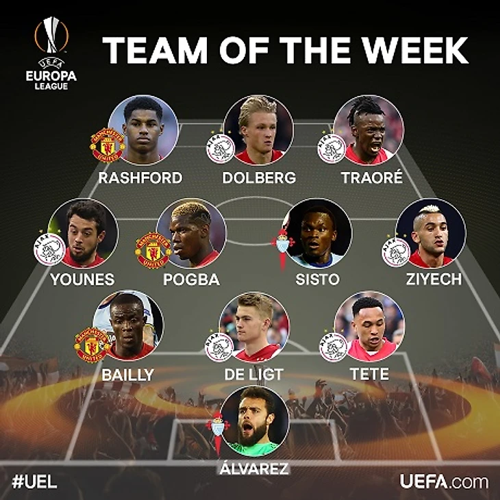 Погба, Рэшфорд и шесть игроков «Аякса» вошли в команду недели в Лиге Европы