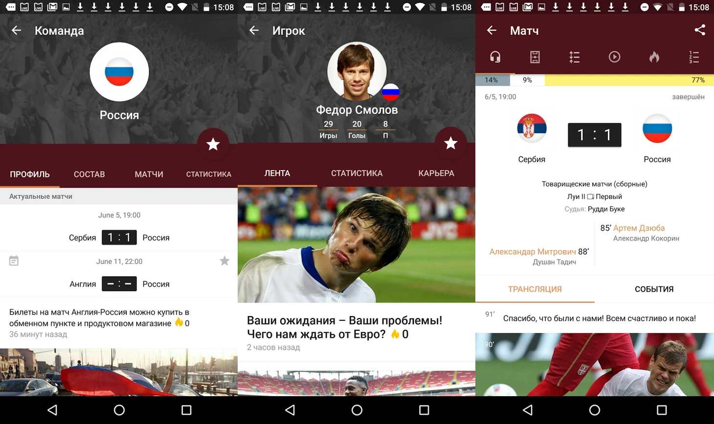 Самым удобным способом следить за выступлениями нашей команды является мобильное приложение сборной России по футболу от Sports.ru.