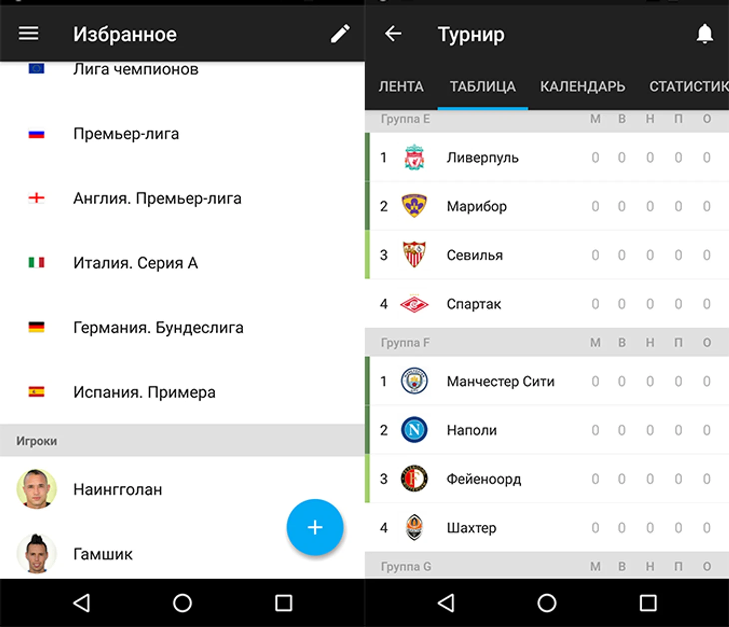 – Возможность добавлять интересующие вас команды, турниры и матчи в «Избранное».