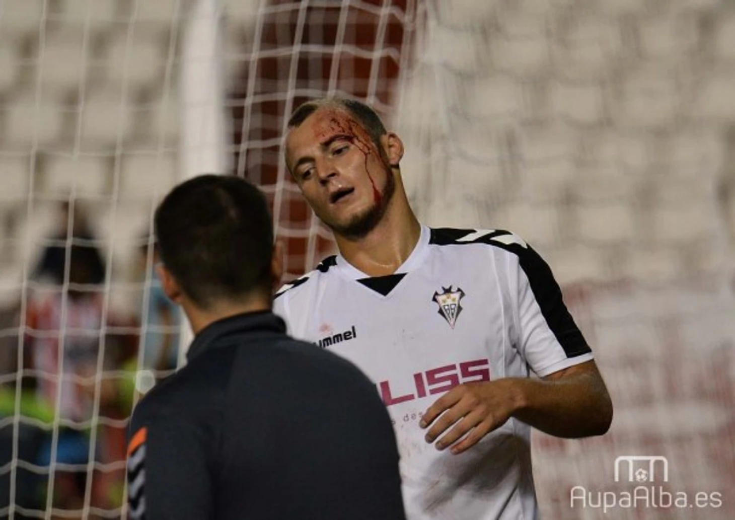 Нападающий «Альбасете» Роман Зозуля разбил голову в дебютном матче против «Луго» (0:1)