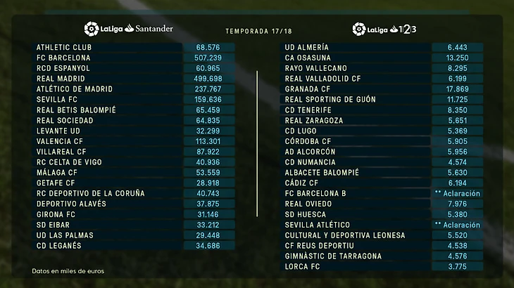 Ла Лига раскрыла суммы, которые клубы примеры и сегунды могут потратить в текущем сезоне, основываясь на доходах команд.