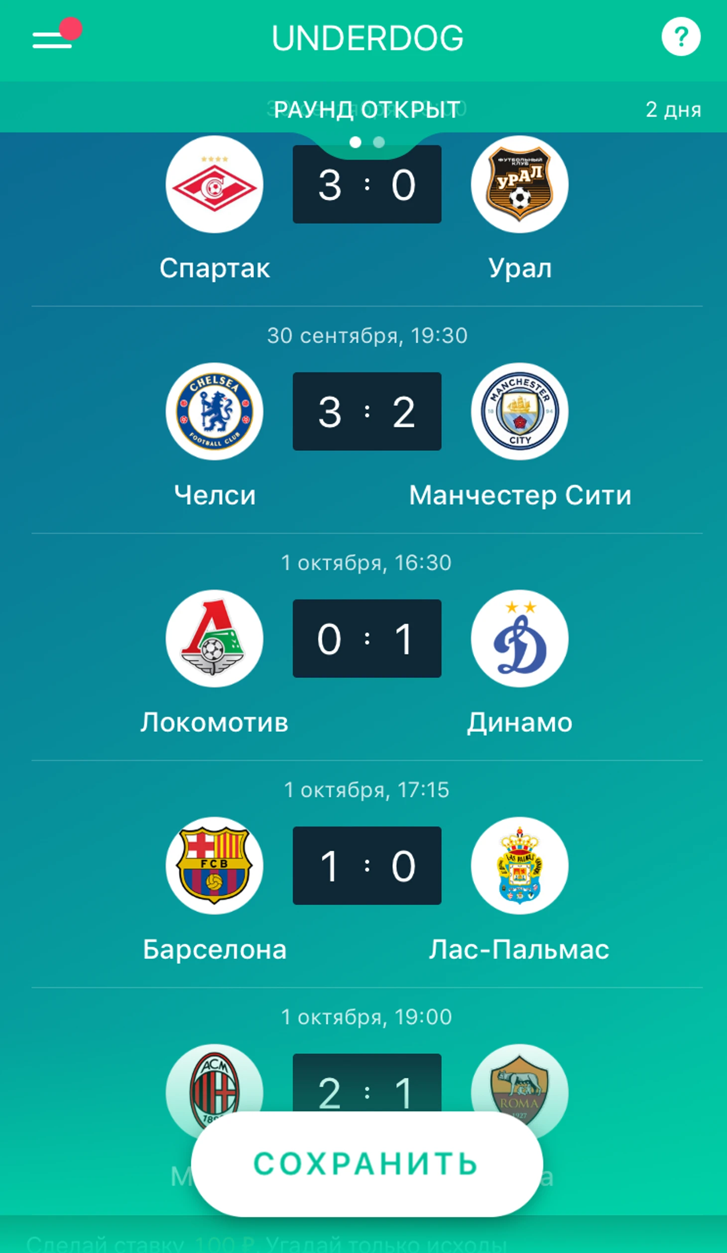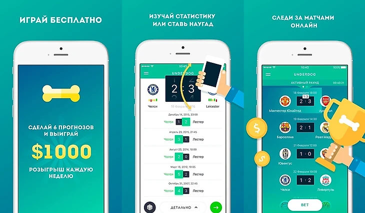 Не знаете на какой счет поставить? Потрясите телефон, и Underdog подскажет вероятный счет.