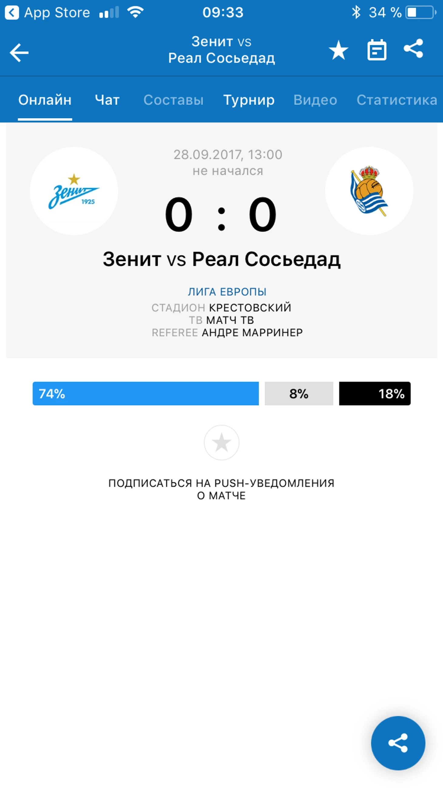 «Зенит» продолжает свое выступление в Лиге Европы. Сегодняшним соперником петербуржцев станет Реал Сосьедад. Сможет ли российский клуб одолеть испанский?Все детали выступления зенитовцев в Лиге Европы, расписание, статистику, push-уведомления, мнения игроков и тренеров вы можете найти в клубном приложении «Зенит+» для мобильных устройств.