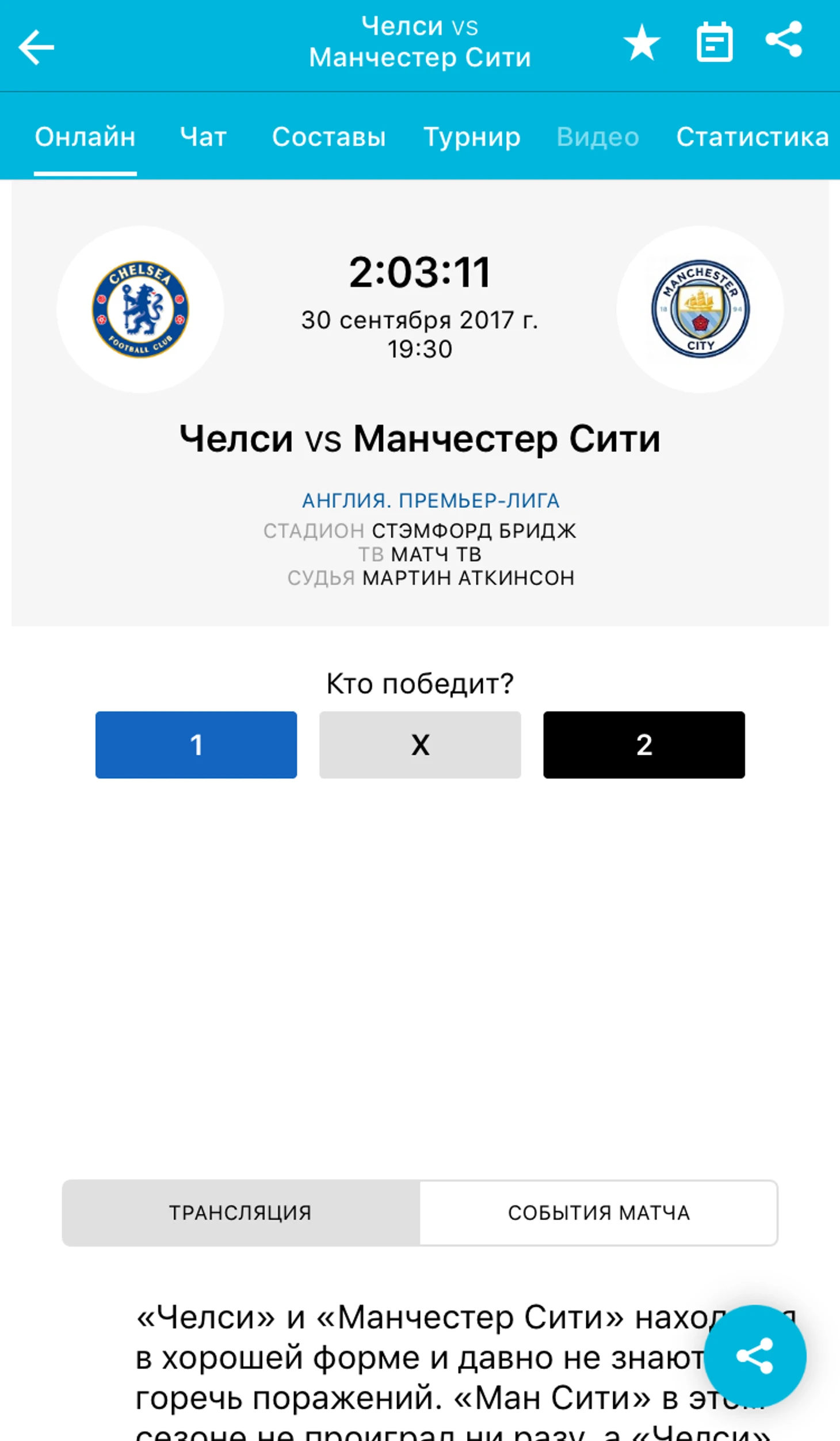 Смогут ли «синие» догнать команду из Манчестера в турнирной таблице?Детали матча, составы команд, мнения игроков и тренеров, статистика онлайн, оперативные push-уведомления и текстовые трансляции — все это вы найдете в клубных приложениях «Челси» и «Манчестер Сити» для мобильных устройств!