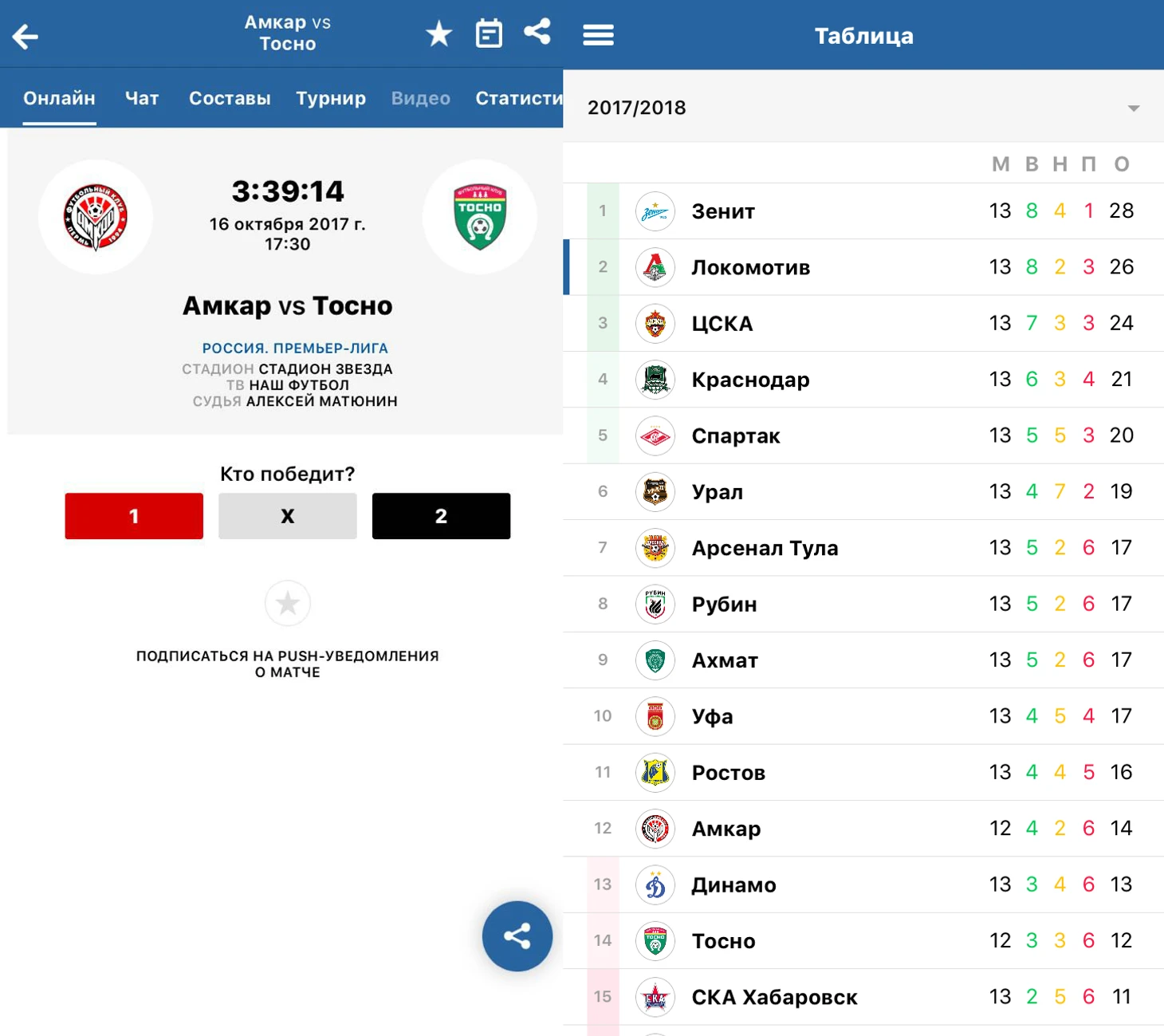 – Текстовые онлайн-трансляции матчей, календарь и турнирная таблица.