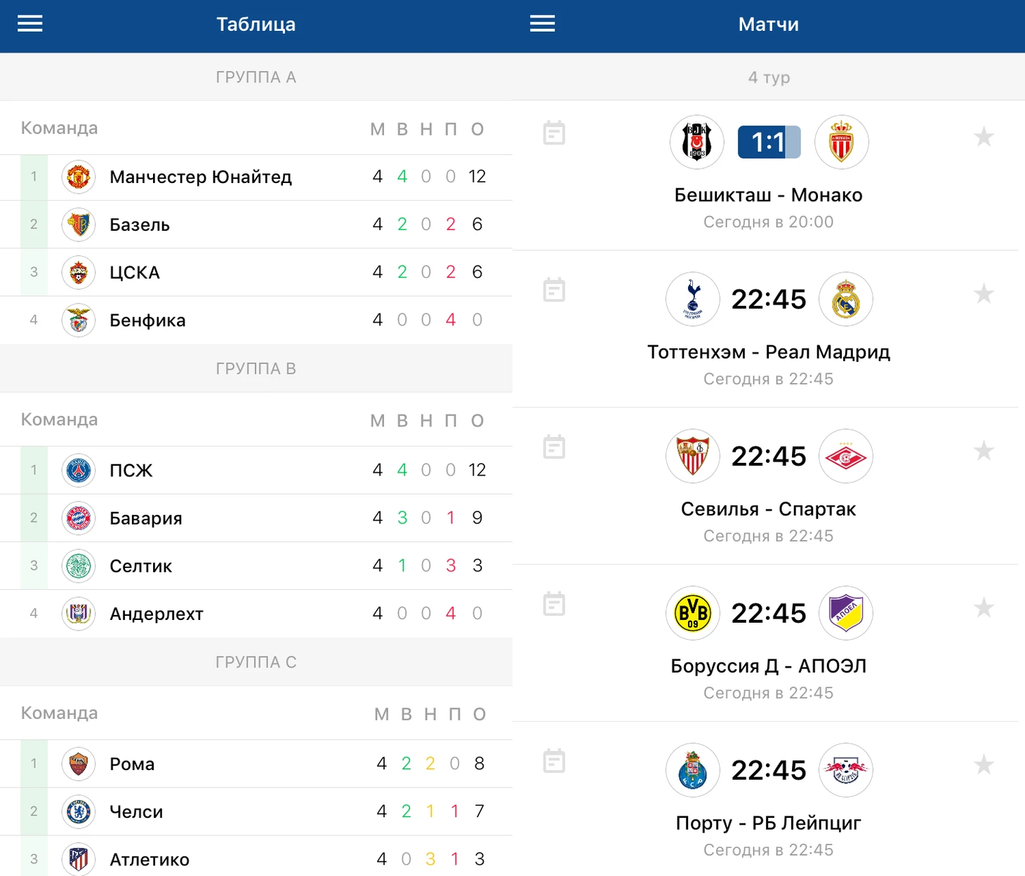 Следите за всеми событиями игрового дня в приложении «Лига Чемпионов+».