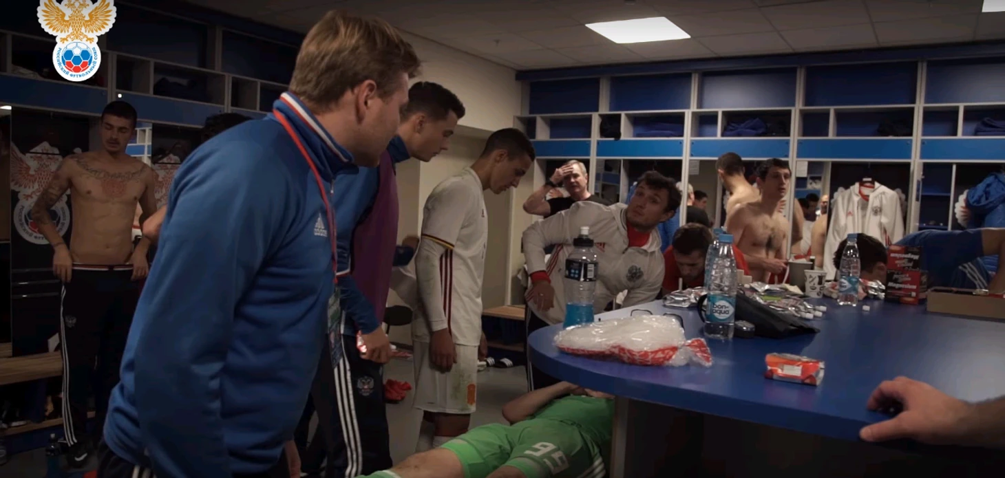 Официальный канал РФС в YouTube показал, как Родриго пришел в раздевалку сборной России и подошел к Луневу, которому в тот момент оказывали помощь.