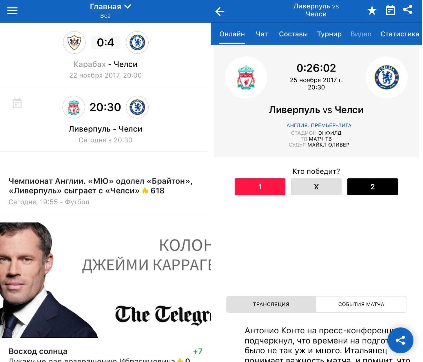 Синие или красные? Следите за матчем «Ливерпуль» – «Челси» в клубных приложениях Sports.ru