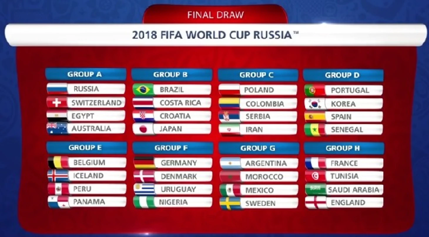 Россия, находящаяся в первой корзине как страна-организатор турнира, попала в группу А со Швейцарией, Египтом и Австралией.