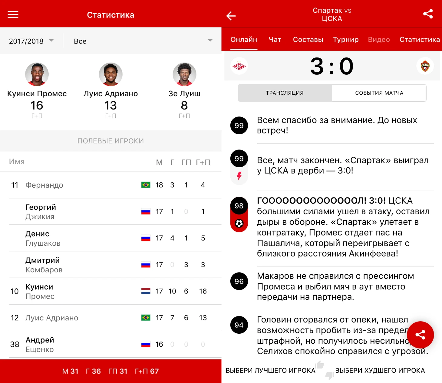 Все детали выступления команды, расписание, статистика, push-уведомления, мнения игроков и тренеров вы можете найти в клубном приложении «Спартак+» для мобильных устройств.