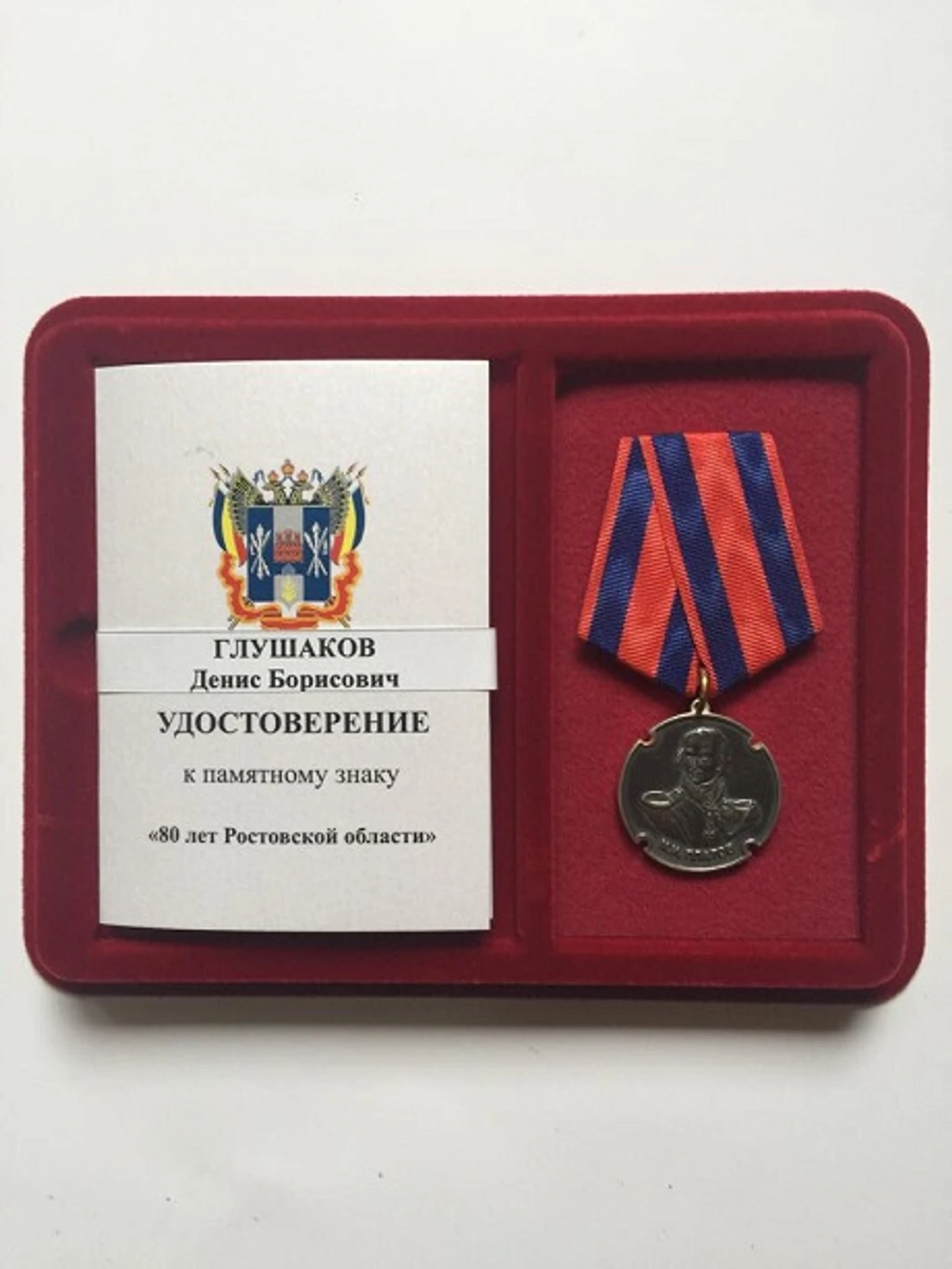 Полузащитник «Спартака» Денис Глушаков получил памятный знак «80 лет Ростовской области» и благодарственное письмо от губернатора региона Василия Голубева.