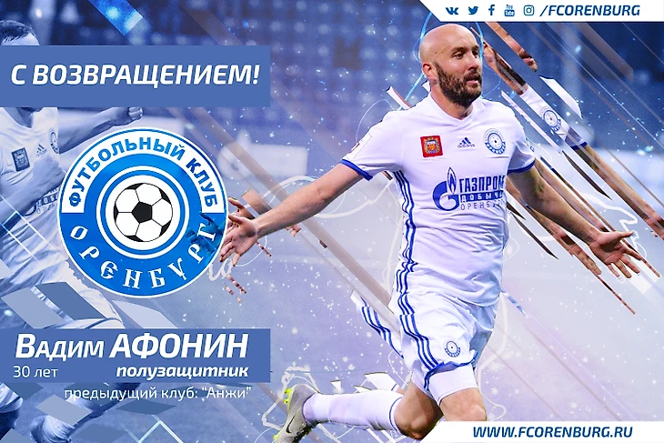 Также новый контракт с «Оренбургом» заключил полузащитник Вадим Афонин, вернувшийся из «Анжи».