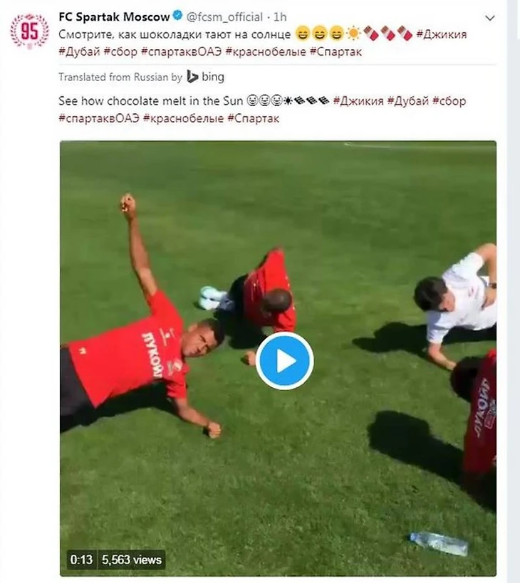 В опубликованном ролике бразильские игроки, которым разрешили приехать на сбор позже остальных, делают упражнения на свежем воздухе. Георгий Джикия говорит: «Смотрите, как шоколадки тают на солнце».