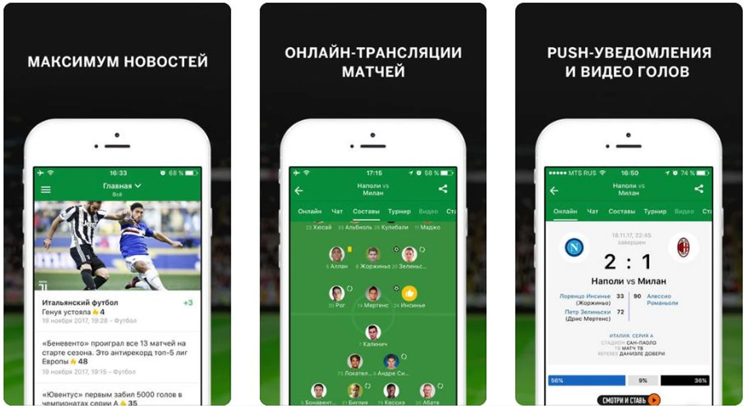 – Уведомления о голах и результатах команд, а также самых важных новостях.