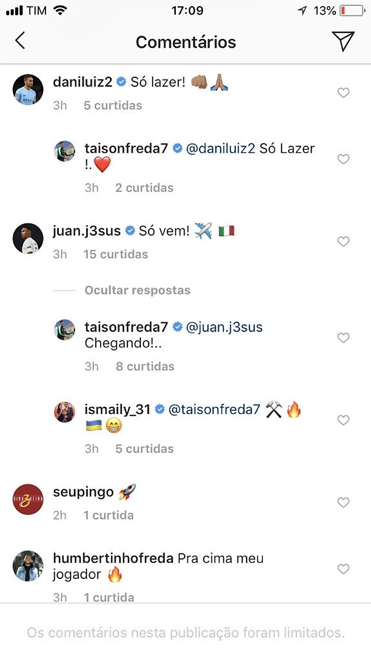 Под постом в Инстаграм Тайсона защитник «Ромы» Жуан Жезус написал «Приходи», на что полузащитник «Шахтера» ответил – «Иду».