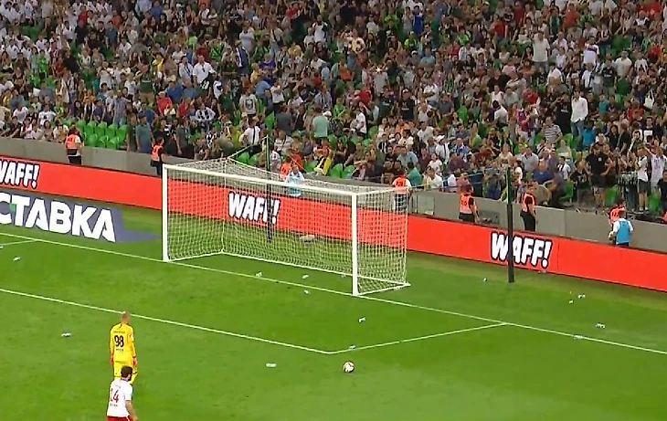 Напомним, зрители швыряли бутылки в штрафную вратаря московской команды Александра Максименко в добавленное арбитром время.
