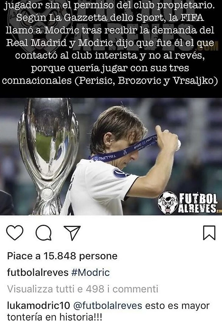 Аккаунт в инстаграме Fútbol Al Revés опубликовал эту информацию у себя, и Модрич оставил комментарий под записью: «Это самая большая чушь в истории».