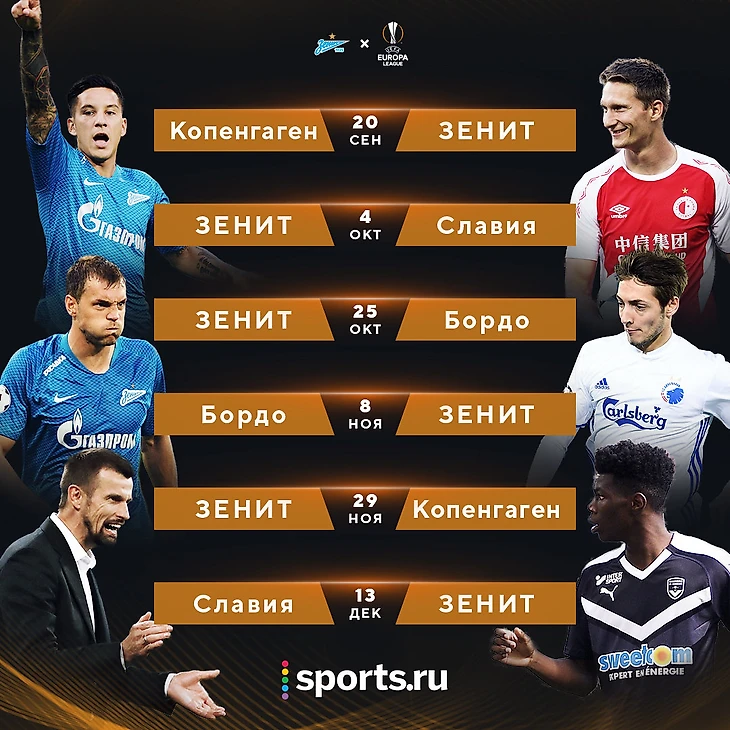 «Зенит» начнет групповой этап ЛЕ игрой с «Копенгагеном», матчи с «Бордо» пройдут в 3-м и 4-м турах