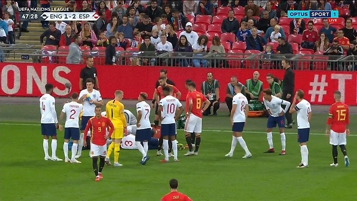 Шесть врачей длительное время работали с игроком, а затем зафиксировали ему шею, положили Шоу на носилки и увезли с поля «Уэмбли» на каталке. В игру на 53-й минуте вошел Дэнни Роуз.