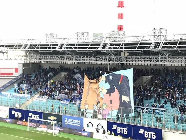 На баннере была обыграна ситуация с бывшим форвардом московской команды, который сейчас находится в СИЗО.
