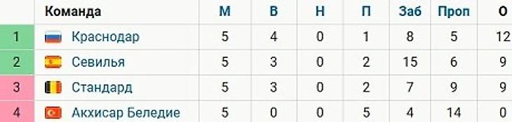 Возможен вариант, при котором «Стандард» победит и в последнем туре, а «Краснодар» уступит «Севилье». Тогда у трех команд будет по 12 очков.
