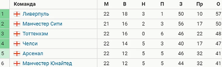 «Манчестер Юнайтед» набрал 41 очко и догнал в таблице «Арсенал». После 22 туров эти команды делят 5-6-е места, но лондонцы имеют преимущество по разнице мячей. «МЮ» и «Арсенал» на 6 очков отстают от замыкающего лигочемпионскую зону «Челси».