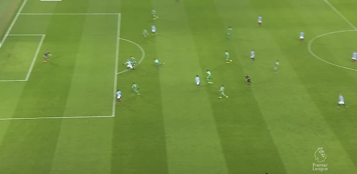 На 46-й минуте форвард «горожан» Серхио Агуэро грудью сделал передачу на англичанина, который находился в положении вне игры.