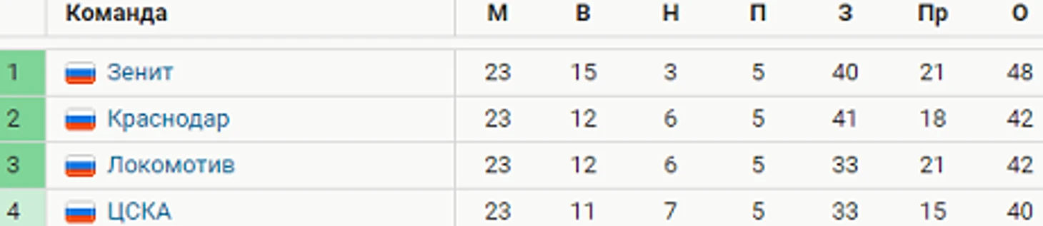 «Зенит» лидирует в чемпионате, на 6 очков опережая «Локомотив» и «Краснодар».