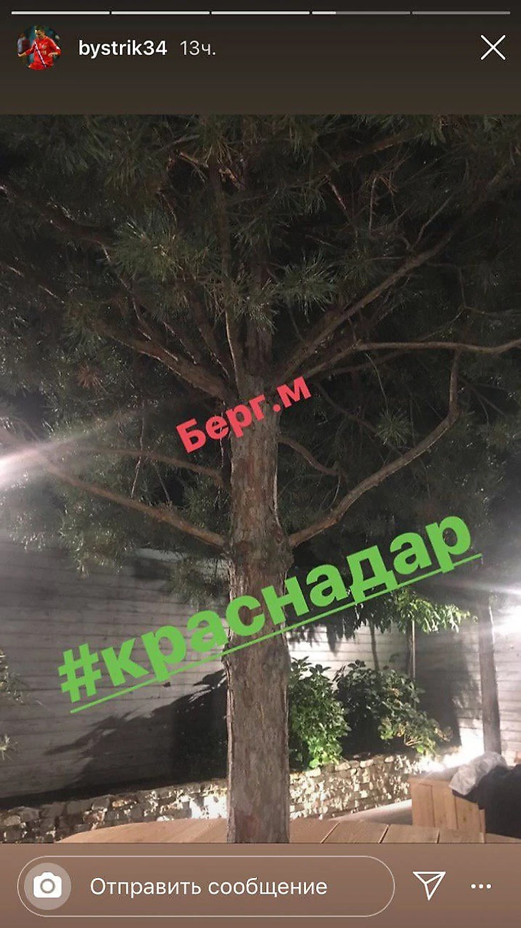 Быстров выложил в инстаграме фотографию сосны и написал «Берг М. #Краснодар».